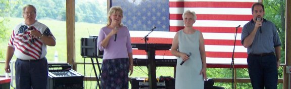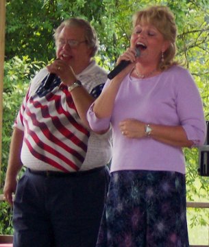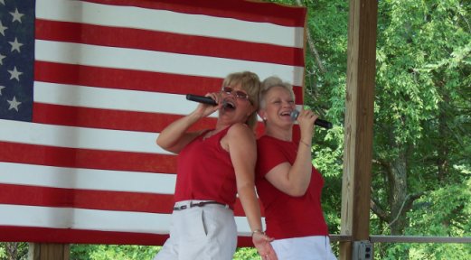 Former Daily Walking group member Joy Duprey and Beverly "ham it up" while doing a sound
